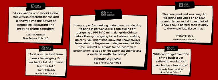 Congratulations on the most outrageous pitch this week, Saumya, Anurag, Tanay & Nidhin!