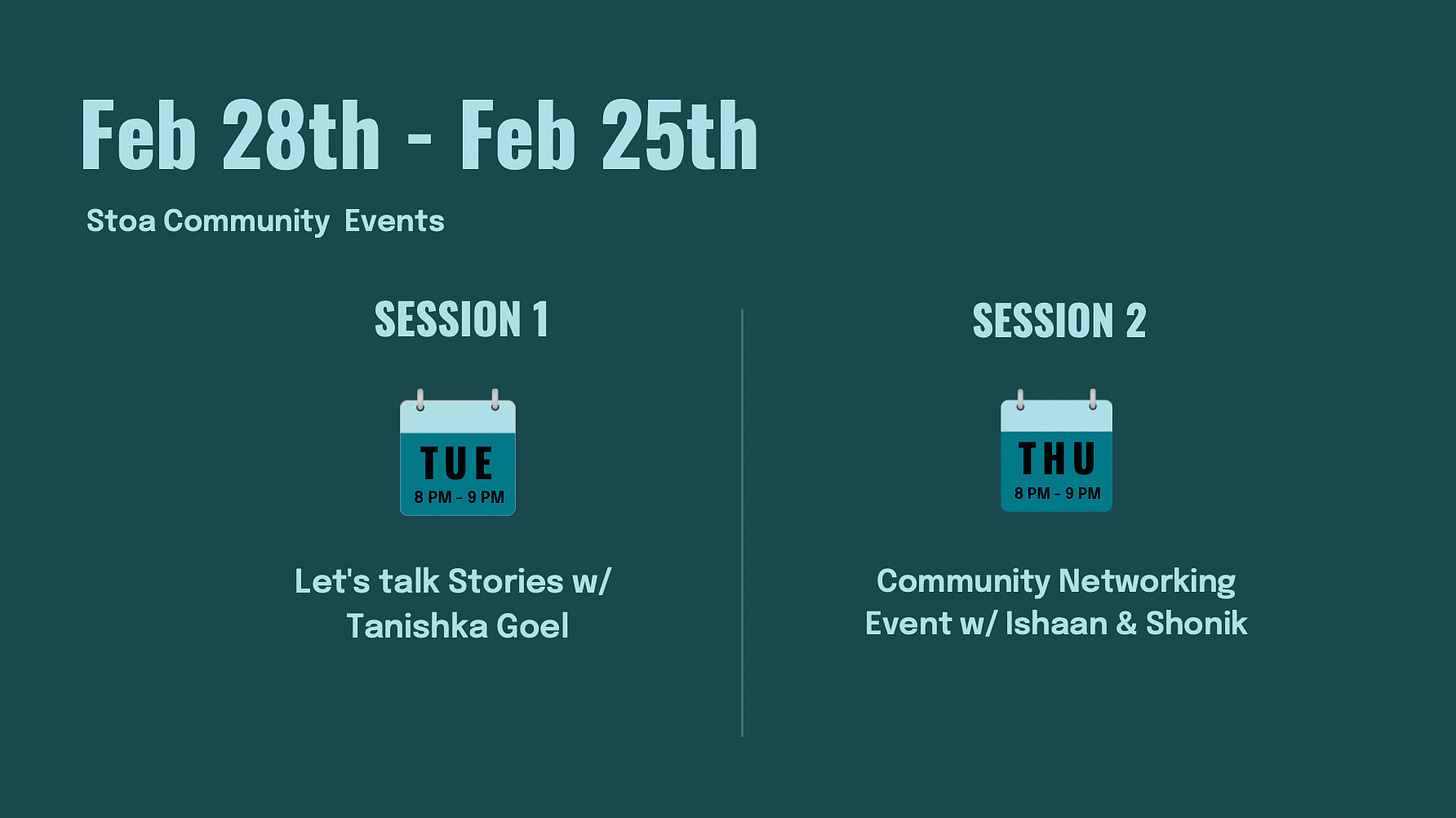 Tomorrow we have Tanishka talking to us about storytelling & how to do it best. If you dont know yet, Tanishka is the best girl we know & a pro-petitioner of Cohort 2 - so this one will be special.
