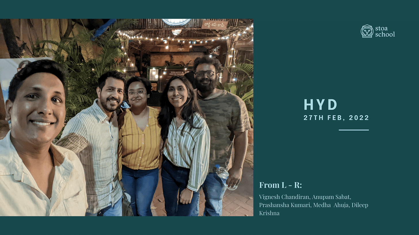 “When I joined, I joined cause one of my buddies from Bangalore told me he was doing this ‘Stoa thing’, so then I thought, ‘why not’.