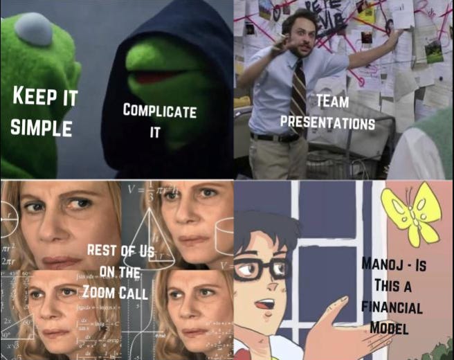 Shreya Thaker for perfectly encapsulating what many Cohort 05 folks were feeling during their Financial Modelling Case Weekend