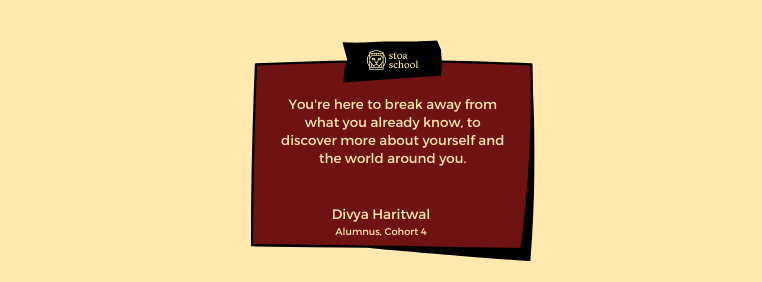 Well, whatever reason you had for wanting to join Stoa there is (mostly) an underlying theme: You want to break away from what you already know, to discover more about yourself and the world around you.
